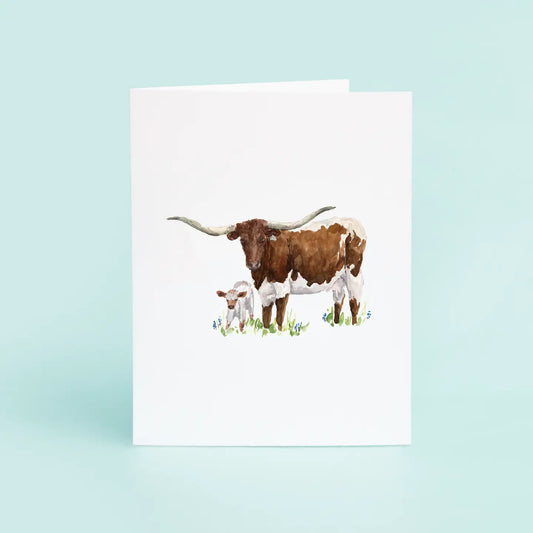 Texas Longhorn and Bluebonnet Western Home Art Print: 8x10