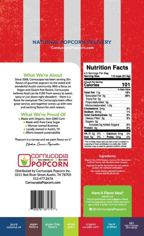 TX Butter Pecan Popcorn (V & GF) Signature Bag