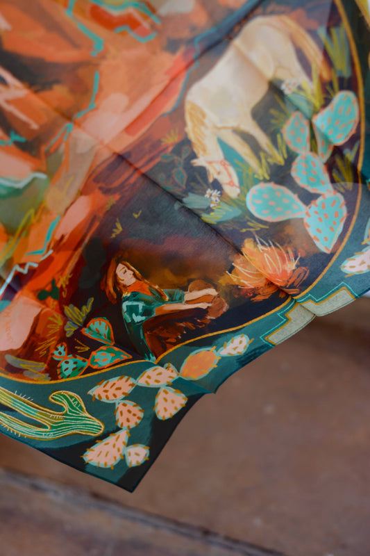 Desert Nights Western Cowgirl and Horse Silk Wild Rag Scarf