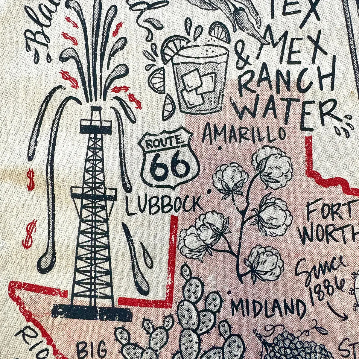 All-Purpose Kitchen Towel Size: 27 1/2" x 18. Features an original hand-illustrated design. Premium 100% cotton. Towels are an off-white cream color. Loop tag on back for easy hanging. Each towel is individually screen printed by talented local artists. Designed and Printed in Nashville, Tennessee.
