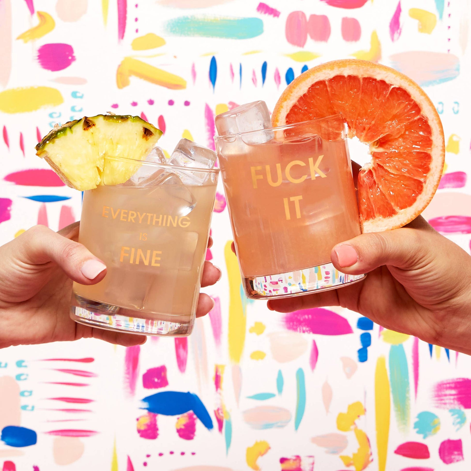 Crush your cocktail in style with our "Everything is fine" gold foil rocks glass. 13.25 oz. Rocks Glass, Gold Foil Printed Hand wash only