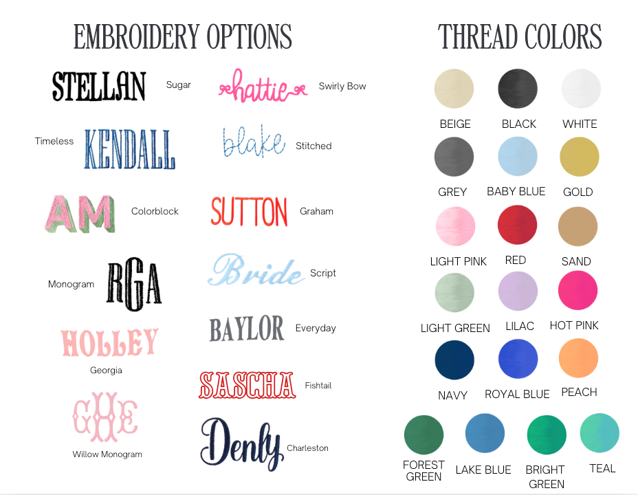 * Embroidery price is included in cost!