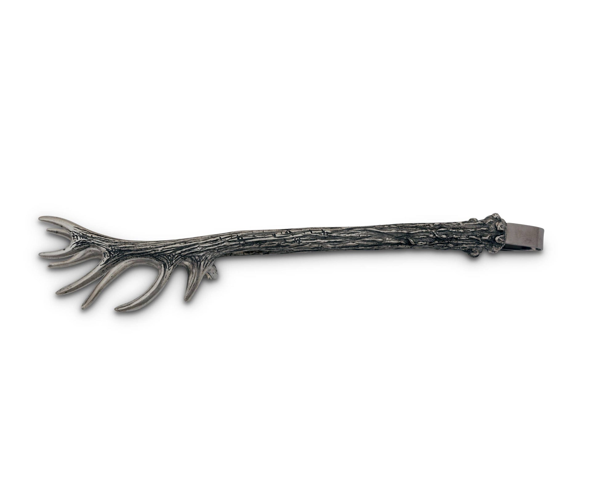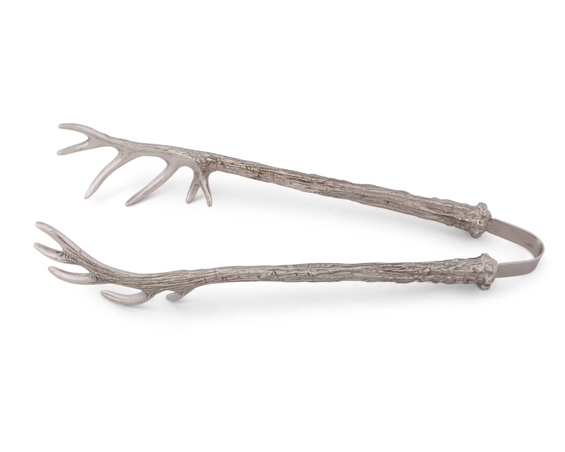 Fill party drinks with ice served using these 8-inch antler tongs from the Vagabond House Lodge Style Collection. Handcrafted from high-quality cast pewter, this pair of tongs is designed to resemble miniaturized elk antlers, adding a touch of rustic elegance to your barware. The pewter is in compliance with FDA rules for direct contact with food and beverages, and no special maintenance is required to keep it in excellent condition aside from washing by hand in warm water with a mild detergent that is nonacidic and nonabrasive. Dry with a soft cloth to discourage water spots from forming. Use these exquisite antler tongs to dispense ice, serve tossed salads or dish up pasta while displaying your love for outdoor life. Size: 8''L x 3''W x 1.5''T Care: Hand or machine wash. Use lowest heat setting on dishwasher, non-acidic cleanser.