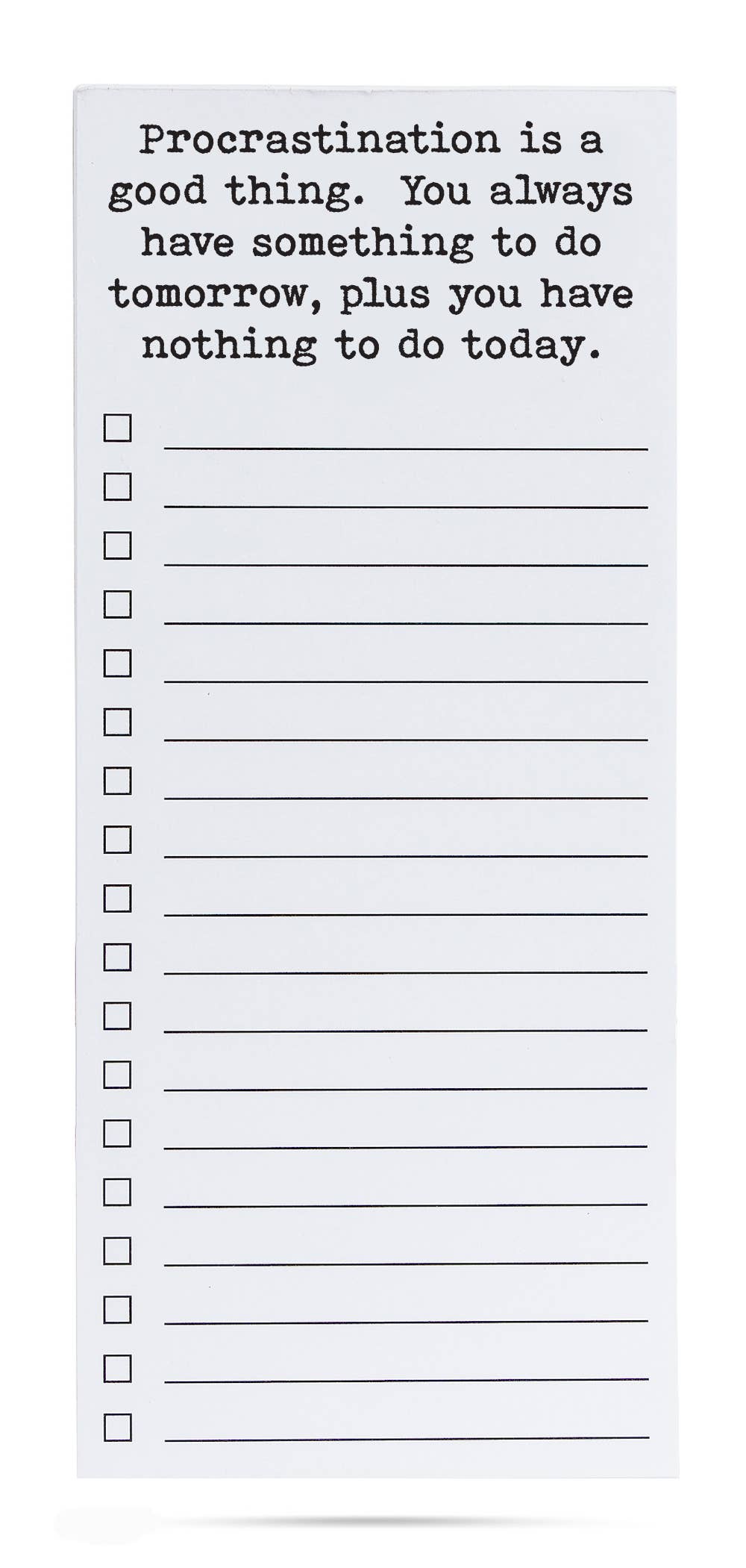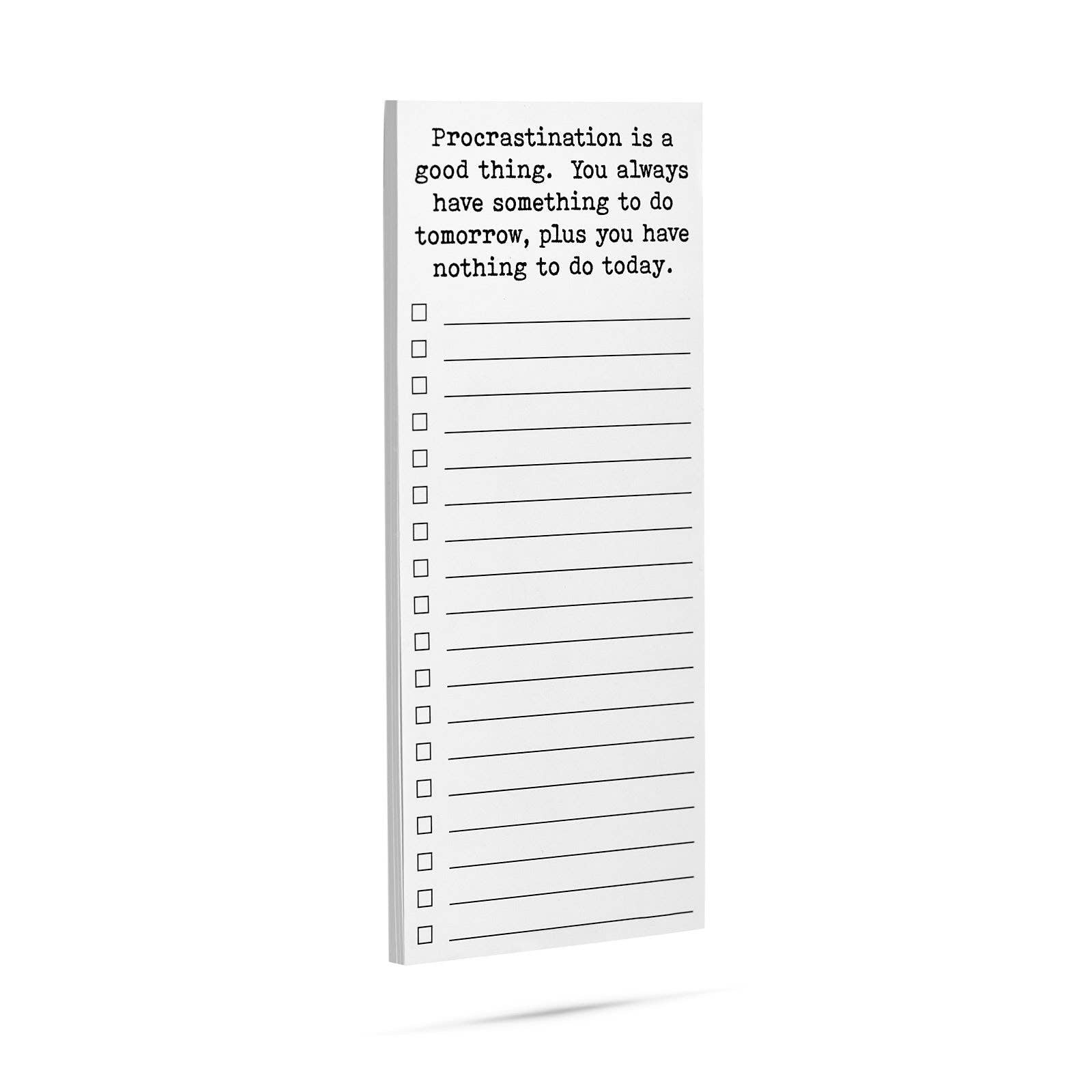 **Now with a magnet back!** Who doesn't love a good list pad, am I right?! They are printed on 50 sheets of super smooth high quality paper, seriously, it's like buttah! These list pads come with a sturdy cardboard backing and are packaged in a cellophane bag. These Notepads measures 3.67" wide by 8.5" tall, and has 50 sheets.